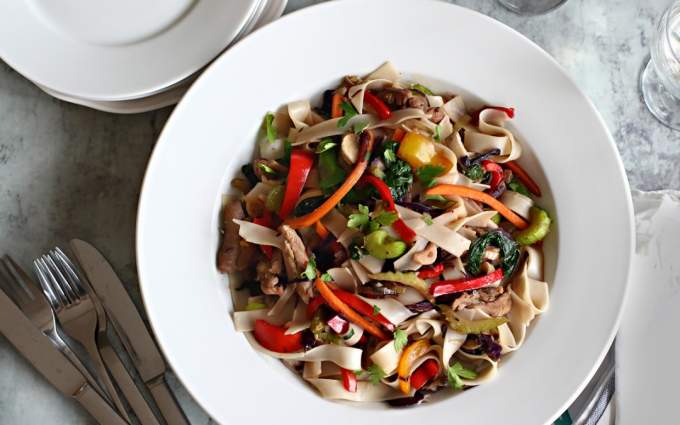 Keleti vacsi roppanós zöldségekkel: Színes pulykás rizstészta wokban