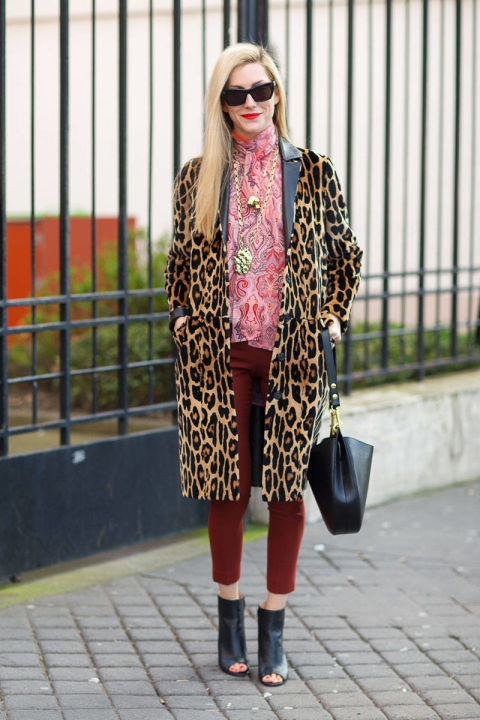 "Erről eszembe jut a legutóbbi párizsi nyaralásunk. Tetszik a koncepció, a csíkos felső, és a mintás sál is tetszik, de valahogy együtt nem működik. Túl sok a szín a palettán. Ez a vörös, a narancs és a lila összecsapása?" -Aram