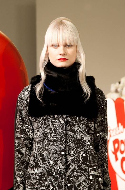 IS: Nem mindennapi prezentációval fogadtad a sajtót. Mesélnél egy kicsit a koncepcióról?NVB: Az őszi-téli kollekcióm, azon túl, hogy a hét főbűn tematikáját dolgozza fel és terjeszti ki a 21. századi bűnökre, az 1950-es, 1960-as évek közkedvelt képzőművészeti irányzatának, a pop-artnak világából is merít. Ez a világ köszön vissza a lézervágáson, illetve a filmnyomott mintán, és ezt a fogyasztói kultúrával átitatott hangulatot szerettük volna hangsúlyozni a prezentáción is. Hatalmas köszönet illeti Molnár Julit, a Toni&Guy Londonban élő stylistját, aki a prezentáció art direktoraként fáradtságot nem ismerve szervezte meg és vezényelte le a 120 perces bemutatót. A humoros és egyben ironikus díszletet – óriásnyalóka, embernagyságú popcornos zacskó, stb. - Yorkból hozattuk, és kiemelt szerepe volt a piros telefonnak is, amely megjárta velünk Budapestet, Londont és Párizst is. Úgy tűnik egyébként, hogy elég jól ráéreztünk az aktuális divathangulatra, mert a Moschino és a Chanel is hasonló inspirációval rukkolt elő Milánóban és Párizsban, néhány nappal utánunk (McDonald's a